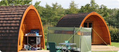 We have six camping pods on our site; two standard pods and four family pods. The standard pods are recommended to sleep two adults and the family pods four adults. The pods are an empty unit with cushion flooring and carpeting, an electric heater, electric socket and electric lights. All cooking must be done outside the pod and we cannot allow pets in the pods.